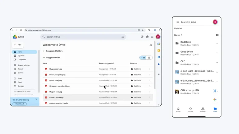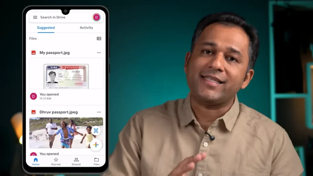 Drive рдРрдк рдореЗрдВ + рдмрдЯрди рдХреЗ рдКрдкрд░ рдПрдХ Scan рдЖрдЗрдХреЙрди рд╣реЛрддрд╛ рд╣реИред рдЙрд╕реЗ рджрдмрд╛рдХрд░ рдЖрдк рдХрд┐рд╕реА рдкреЛрд╕реНрдЯрдХрд╛рд░реНрдб, рдкреИрди рдХрд╛рд░реНрдб рдпрд╛ рдХрд┐рд╕реА рдкреЗрдкрд░ рдХреЛ рд╕реНрдХреИрди рдХрд░ рд╕рдХрддреЗ рд╣реИрдВ рдФрд░ рд╕реАрдзреЗ PDF рдореЗрдВ Drive рдореЗрдВ рд╕реЗрд╡ рдХрд░ рд╕рдХрддреЗ рд╣реИрдВред рдорд▓реНрдЯреАрдкрд▓ рдкреЗрдЬ рднреА рдПрдХ рд╕рд╛рде рд╕реНрдХреИрди рдХрд░ рд╕рдХрддреЗ рд╣реИрдВред рдореЗрд░реЗ рдкрд╛рд╕ рд░рд╛рдШрд╡ рдХреА рднреЗрдЬреА рдкреЛрд╕реНрдЯрдХрд╛рд░реНрдб рдХреЛ рдореИрдВрдиреЗ рд╕реНрдХреИрди рдХрд░рдХреЗ рд╕реЗрд╡ рдХрд┐рдпрд╛ рдерд╛тАФрдпрд╣ рдмрд╣реБрдд рдЙрдкрдпреЛрдЧреА рдлреАрдЪрд░ рд╣реИред
