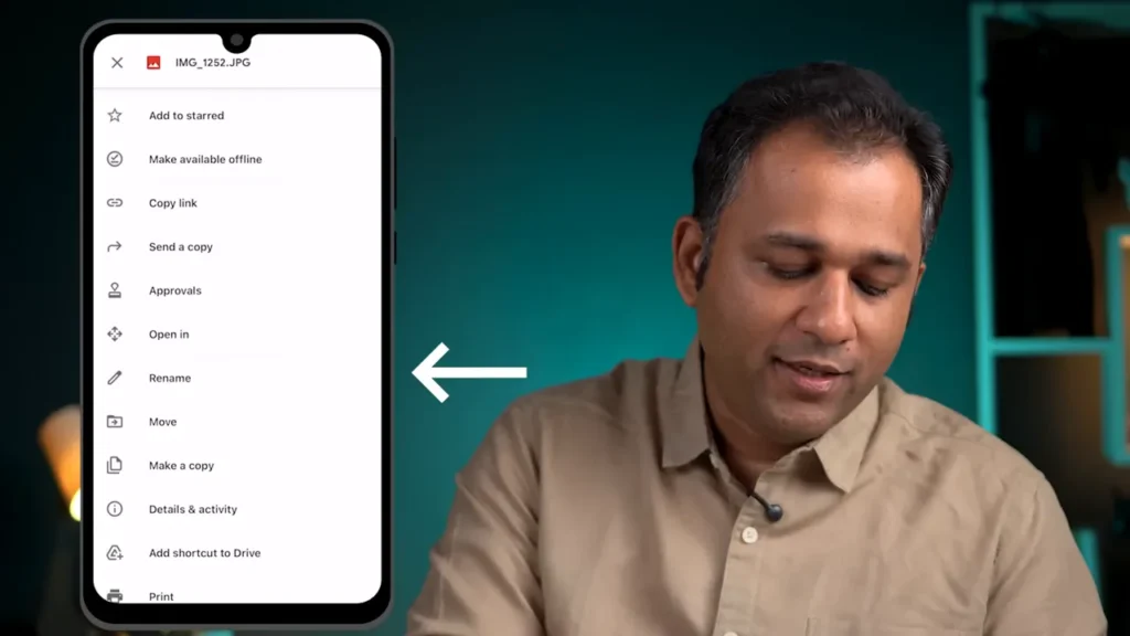 рдЕрдЧрд░ рдлрд╛рдЗрд▓ рдХрд╛ рдирд╛рдо рдмрджрд▓рдирд╛ рд╣реИ рддреЛ рдореЛрдмрд╛рдЗрд▓ рдкрд░ рдлрд╛рдЗрд▓ рд╕реЗрд▓реЗрдХреНрдЯ рдХрд░рдХреЗ рддреАрди рдбреЙрдЯреНрд╕ рдореЗрдВ Rename рдЪреБрдиреЗрдВред рдбреЗрд╕реНрдХрдЯреЙрдк рдкрд░ рдлрд╛рдЗрд▓ рдкрд░ рд░рд╛рдЗрдЯ рдХреНрд▓рд┐рдХ рдХрд░ Renameред