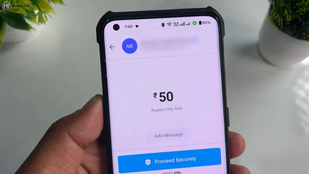 पेमेंट सफल होने पर ट्रांजेक्शन कम्प्लीट का मैसेज दिखेगा। आप मोबाइल नंबर, बैंक अकाउंट या UPI ID तीनों पर पैसे भेज सकते हैं।