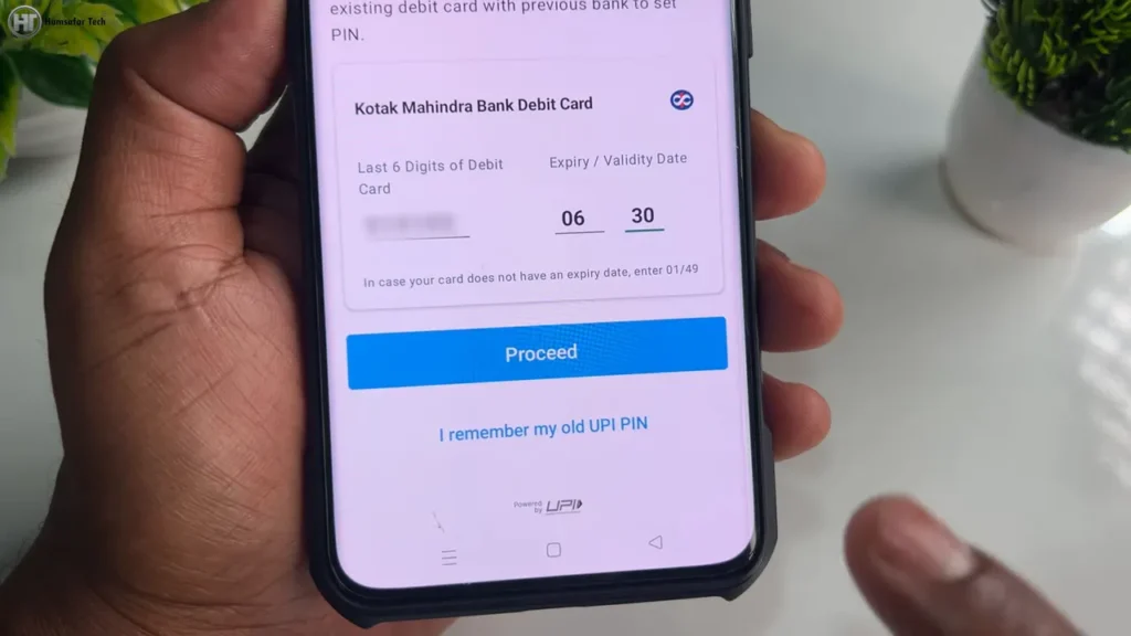एटीएम कार्ड के आखिरी 6 नंबर और expiry month/year डालें, फिर Proceed करें।